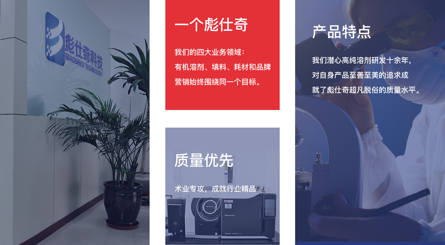 天津市彪仕奇科技發(fā)展有限公司成立于2005年,是一家致力于色譜溶劑的生產(chǎn)、研發(fā)和銷售的企業(yè),擁有優(yōu)質(zhì)的化工產(chǎn)品和精密的分析檢測(cè)儀器,同時(shí)具備安全作業(yè)的環(huán)境、一定水平的技術(shù)和管理及配套的軟件資源。并于同年推出“彪仕奇”品牌色譜溶劑。